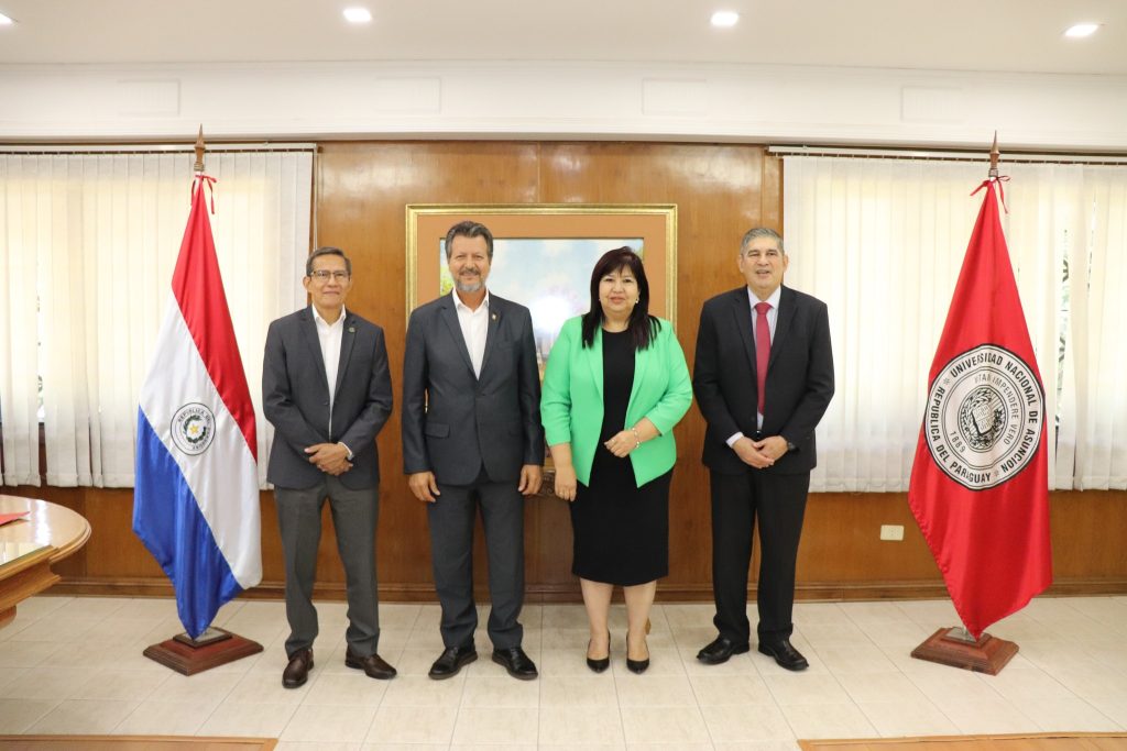 Con el propósito de fortalecer las acciones conjuntas orientadas al desarrollo académico de alto nivel, la Prof. Dra. Zully Vera de Molinas, rectora de la Universidad Nacional de Asunción (UNA), recibió el 11 de diciembre de 2025 al Prof. Dr. Pedro Antonio de Melo, presidente del Instituto de Investigaciones y Estudios en Administración Universitaria (INPEAU) de la Universidad Federal de Santa Catarina (UFSC), de Brasil; al Prof. Dr. Roberti Daniel González, decano de la Facultad de Ciencias Económicas (FCE-UNA); y a su equipo técnico, en un encuentro desarrollado en el campus de San Lorenzo.